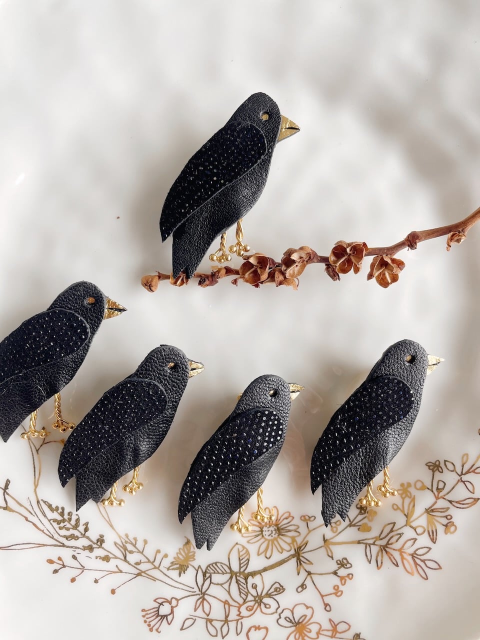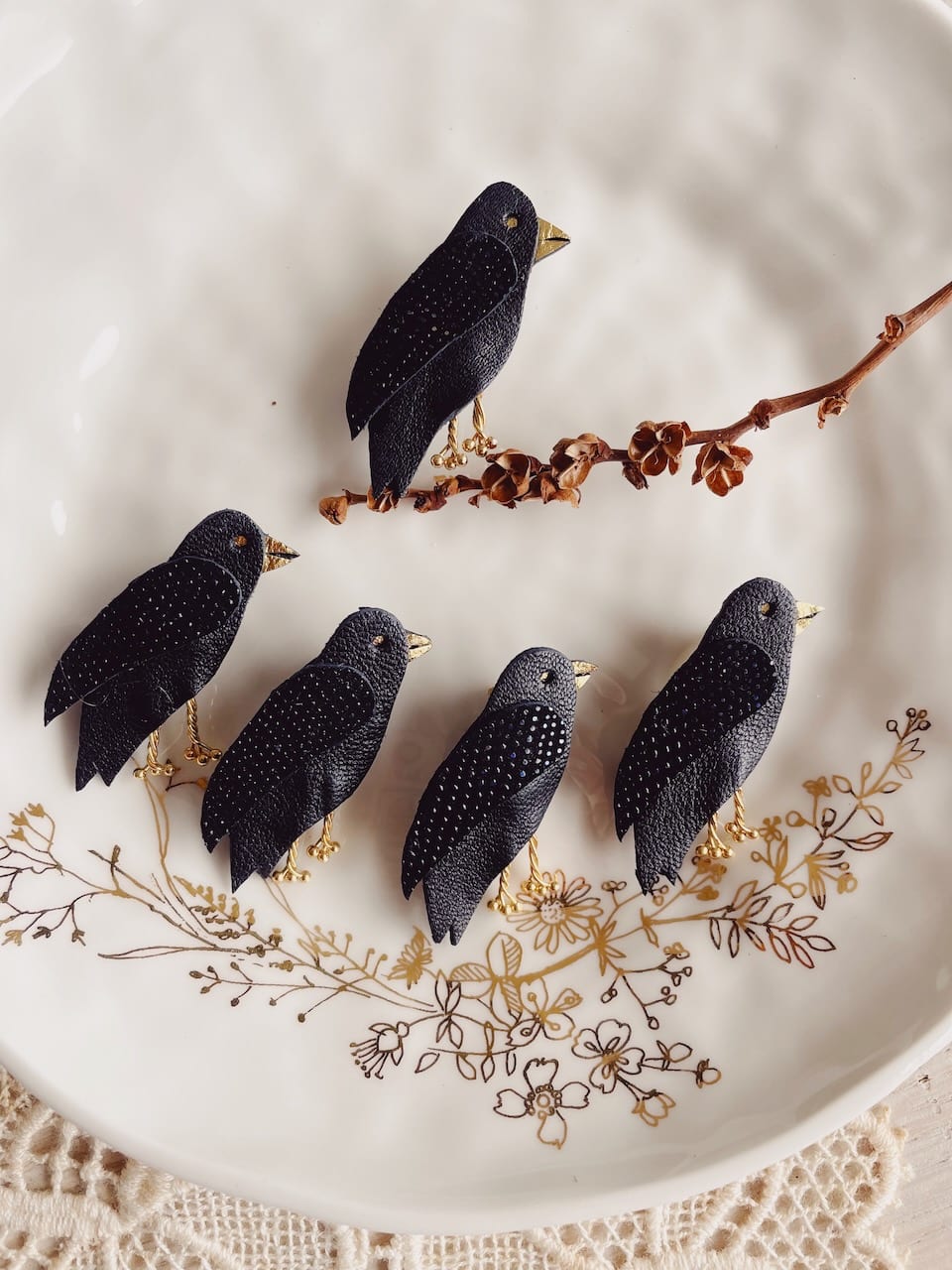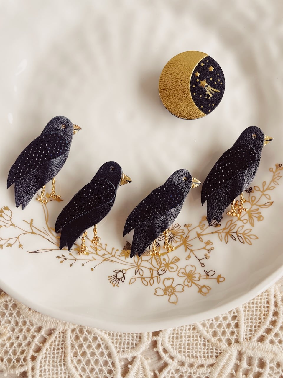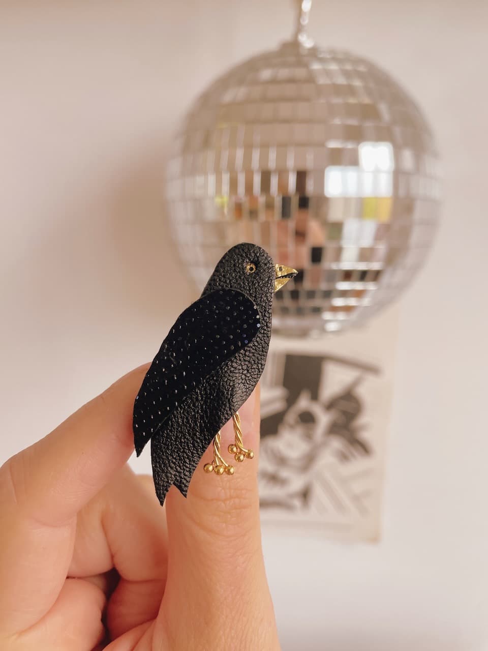 Cette jolie broche en cuir upcyclé se présente sous forme d’un ravissant corbeau ou d’une corneille ( les deux se ressemblant drôlement). Chaque oiseau est découpé puis assemblé à la main avec minutie. Chaque broche est donc unique. Intemporelle et discrète, elle orne avec élégance les tenues les plus raffinées et apporte un souffle de fantaisie poétique ou mystique à un simple t-shirt, une jolie robe, veste ou une chemise. Son fermoir sécurisé permet aussi de la porter sur un sac, un chapeau ou tout autre accessoire. Un cadeau unique et durable pour tous les amoureux des oiseaux comme des fables, les fans de poésie ou de nouvelle sorcellerie à (s’) offrir comme un petit bonheur ou pour les grandes occasions. PS : pensez à lui associer d’autres broches rouge gorge, écureuils ou douce nuit, ce sont des petits cadeaux parfaits pour les amoureux de la nature, des bois et de la forêt. Dimensions : environ 5 cm. Existe en version boucles d’oreilles