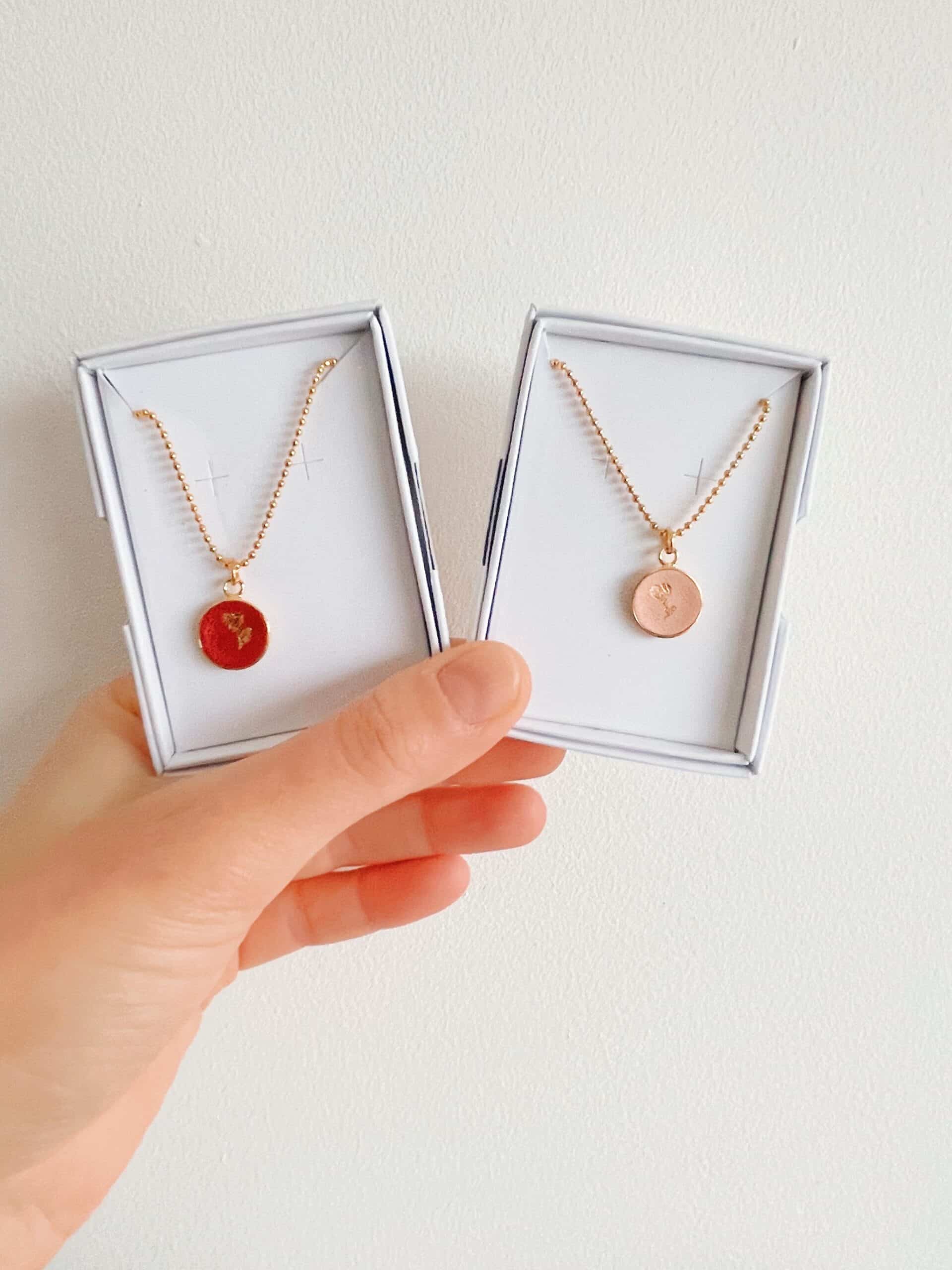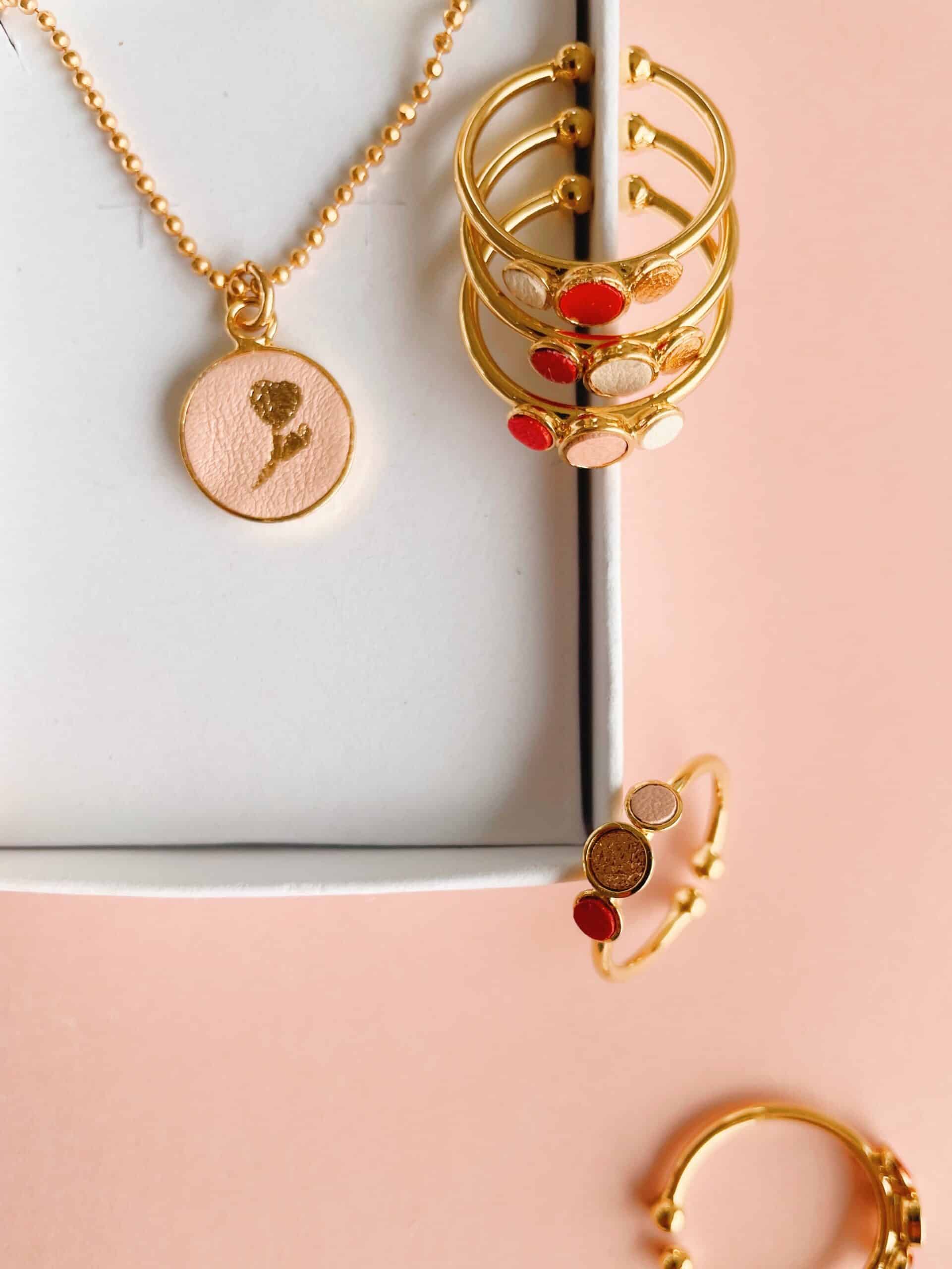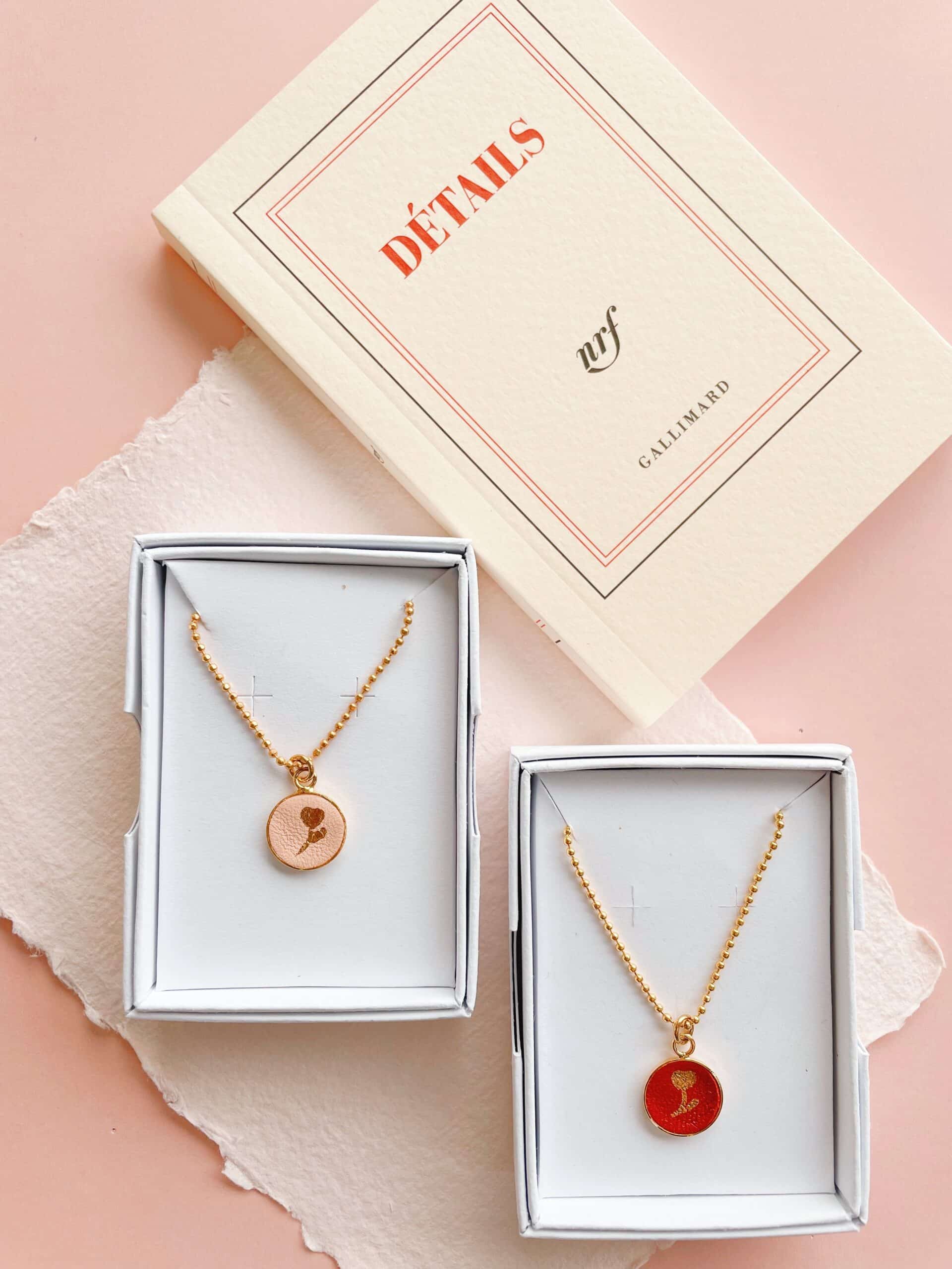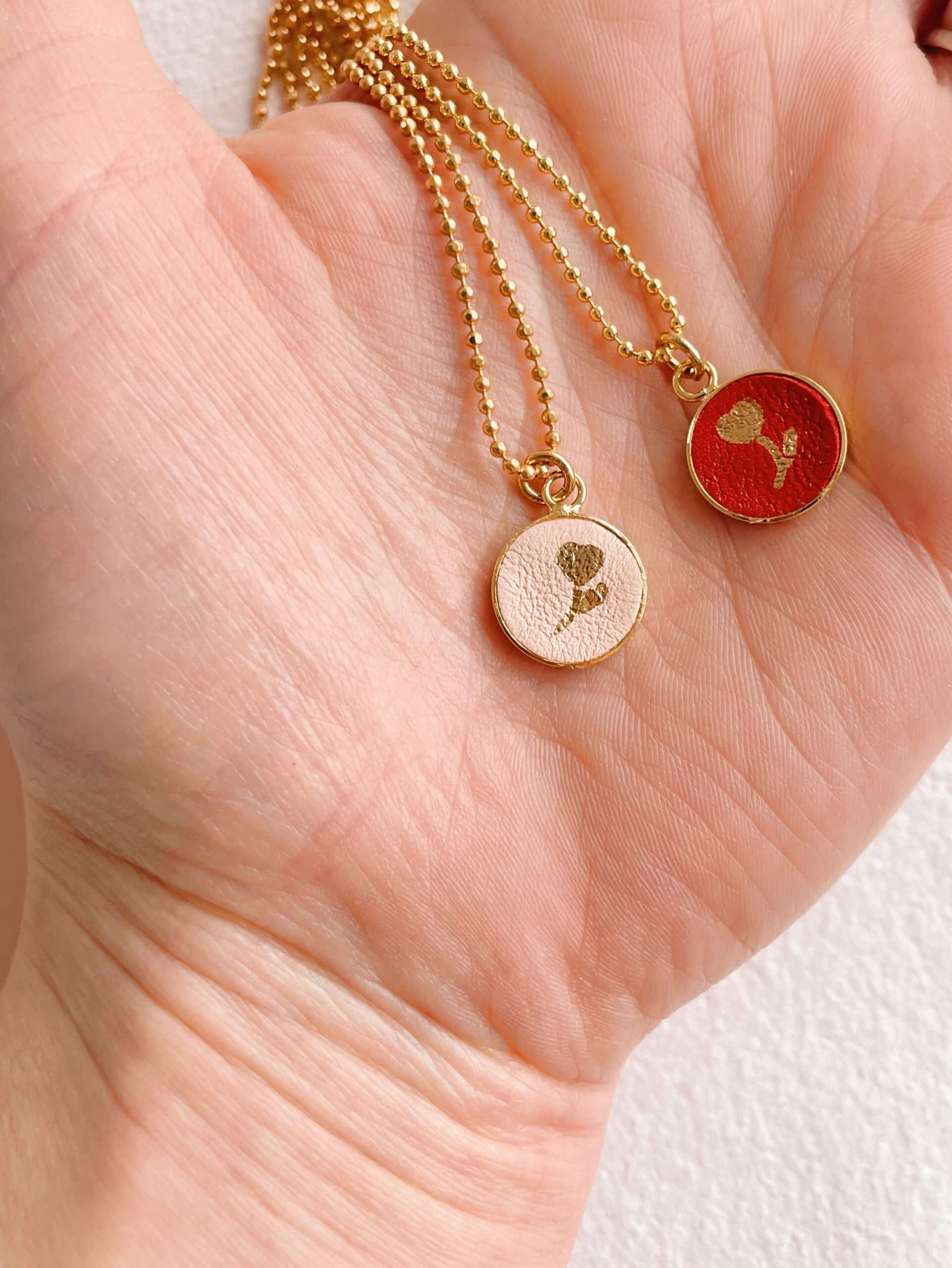 Un collier discret et élégant, comme un murmure au creux de l’oreille. Cuir upcyclé français sublimé par une dorure à chaud à l’or véritable, monté sur une chaîne et un support en laiton doré à l’or fin. Chaîne de 45 cm environ, médaillon de 12 mm. Chaque pièce est unique.
