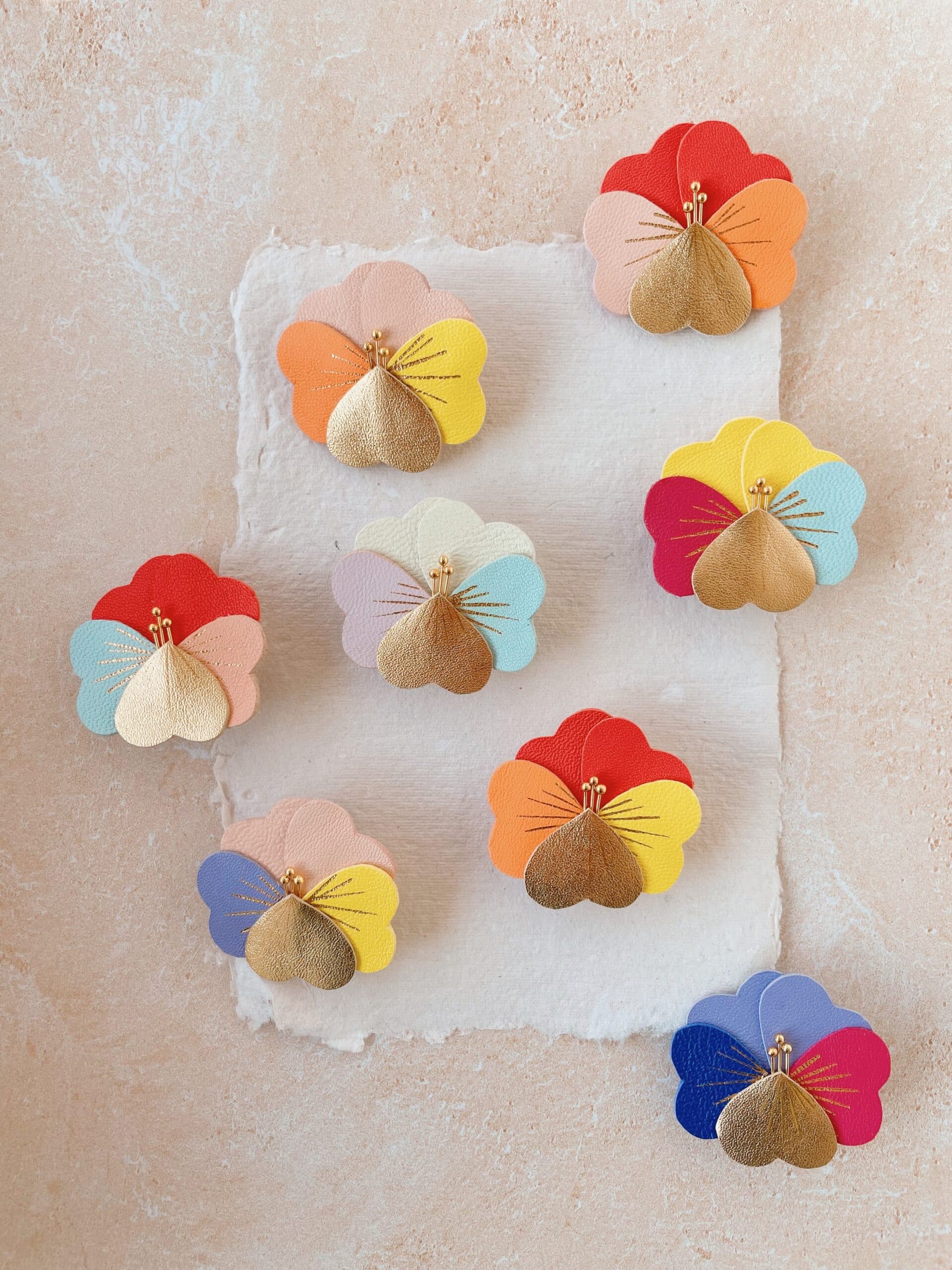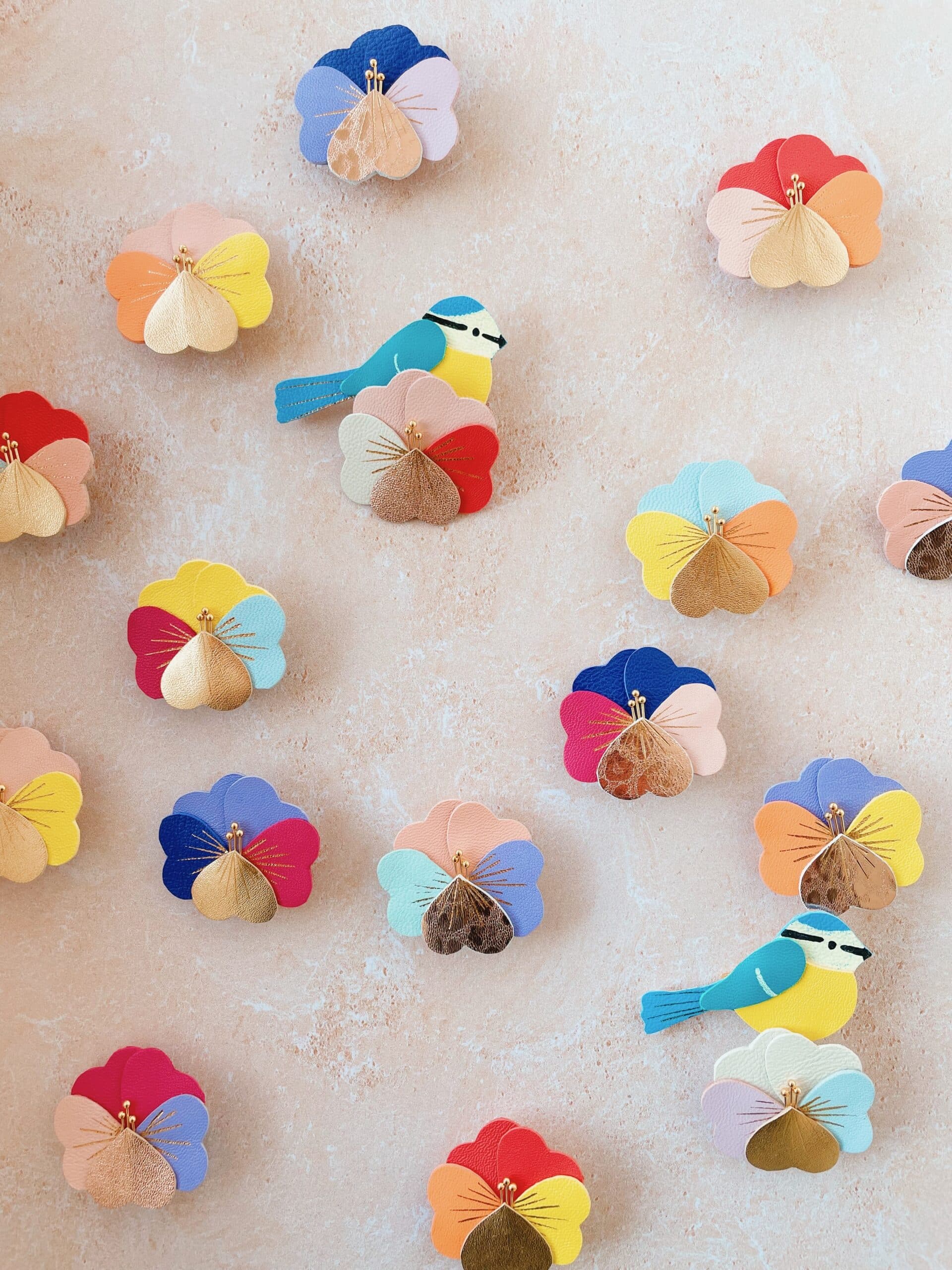 Un bijou floral aux couleurs de la belle saison. Cette broche pensée, délicatement colorée, capture l’esprit du printemps et des instants lumineux qui fleurissent au fil des jours. Ses pétales se déclinent en nuances fraîches et éclatantes – bleu ciel, lilas tendre, rose poudré ou saumoné, jaune mimosa, orange mandarine, fuchsia, indigo… Des couleurs pleines de délicatesse, comme une invitation à célébrer la douceur retrouvée.