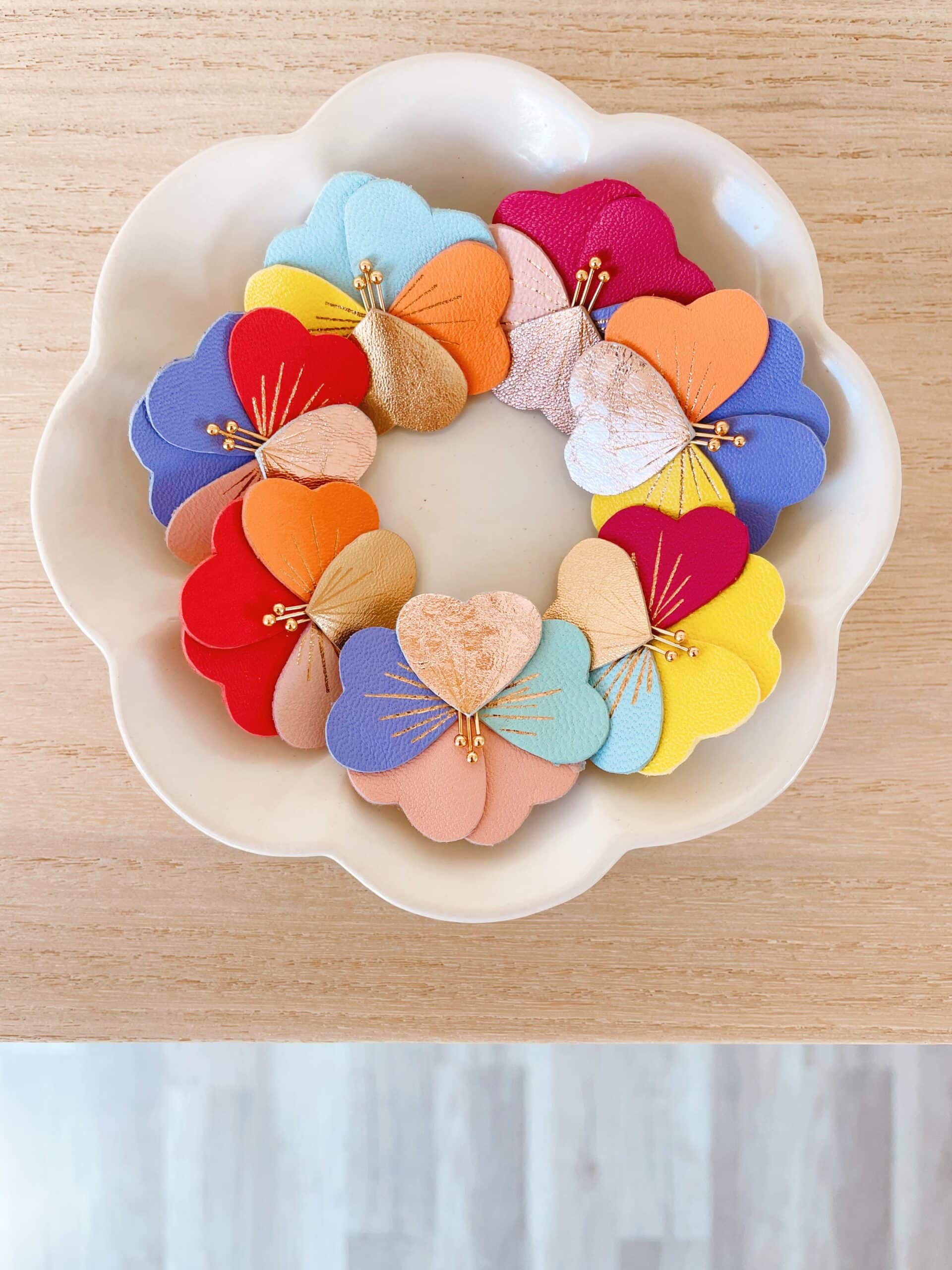Une fleur durable à porter comme un fragment de printemps. Façonnée en cuir surcyclé, cette broche pensée est sublimée par des touches de dorure à chaud à la main qui souligne chaque corolle d’un éclat précieux et d’étamines en laiton doré. Ses teintes printanières évoquent la douceur des premiers jours ensoleillés, où la nature s’éveille et fleurit avec éclat. Dimensions : fleur environ 4 cm. Chaque modèle est unique.