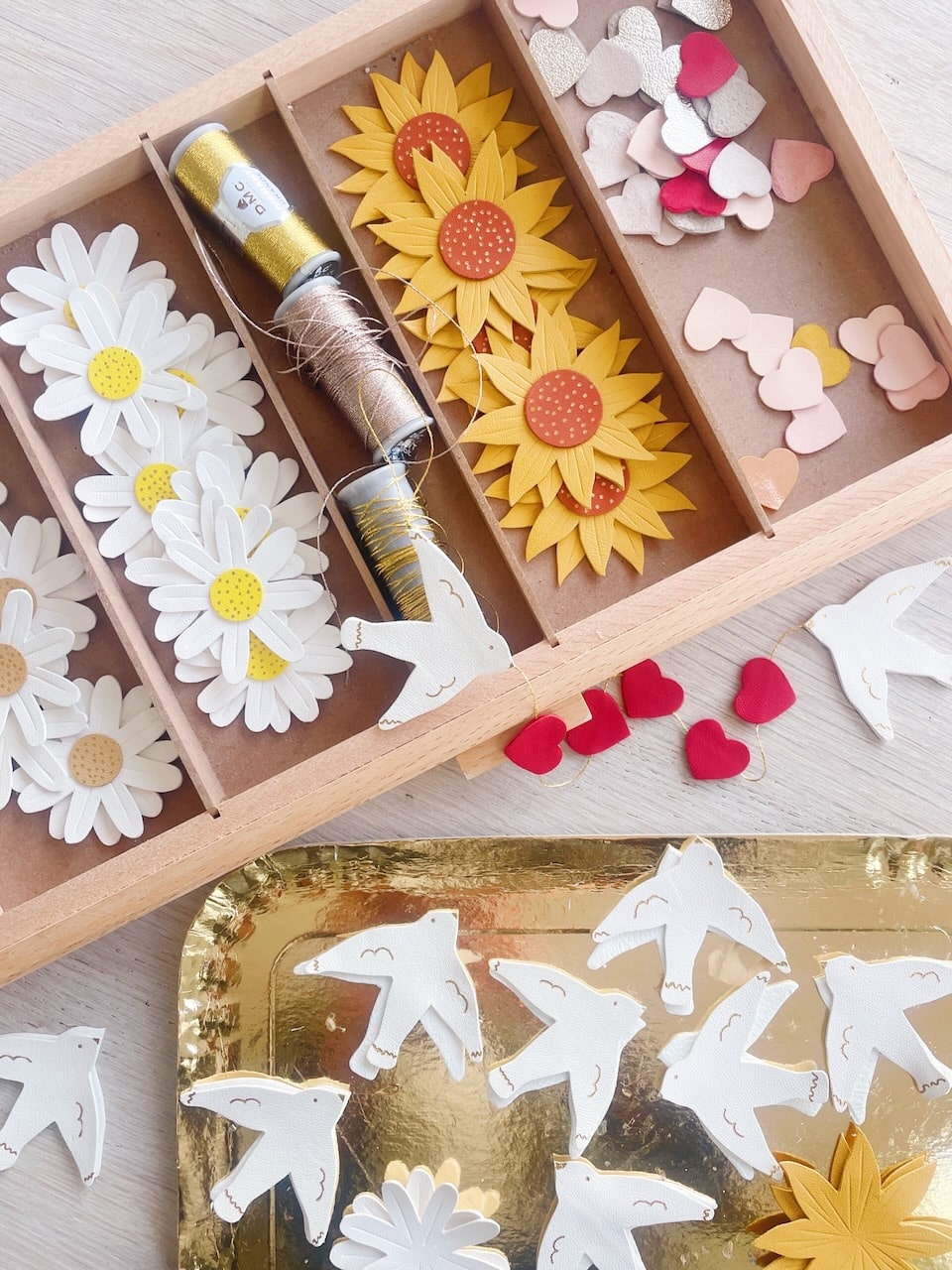 Un artisanat au service du langage des fleurs. La collection Les effleurées se compose ainsi de fleurs françaises durables en cuir upcyclé, fruit d’un travail artisanal qui sublime les excédents et reliquats de tanneries françaises (upcycling). Chaque fleur est méticuleusement façonnée à la main, de la conception du gabarit à la découpe délicate, jusqu’à la dorure à chaud des détails du coeur de la fleur et le marquage raffiné des pétales.
