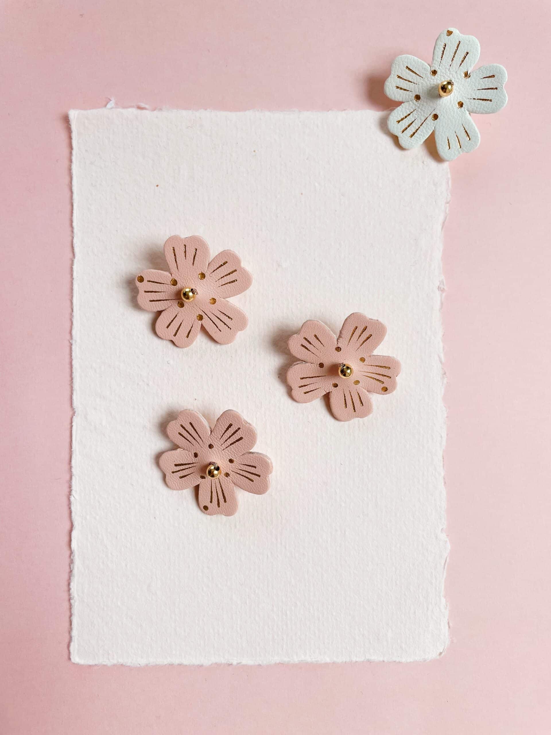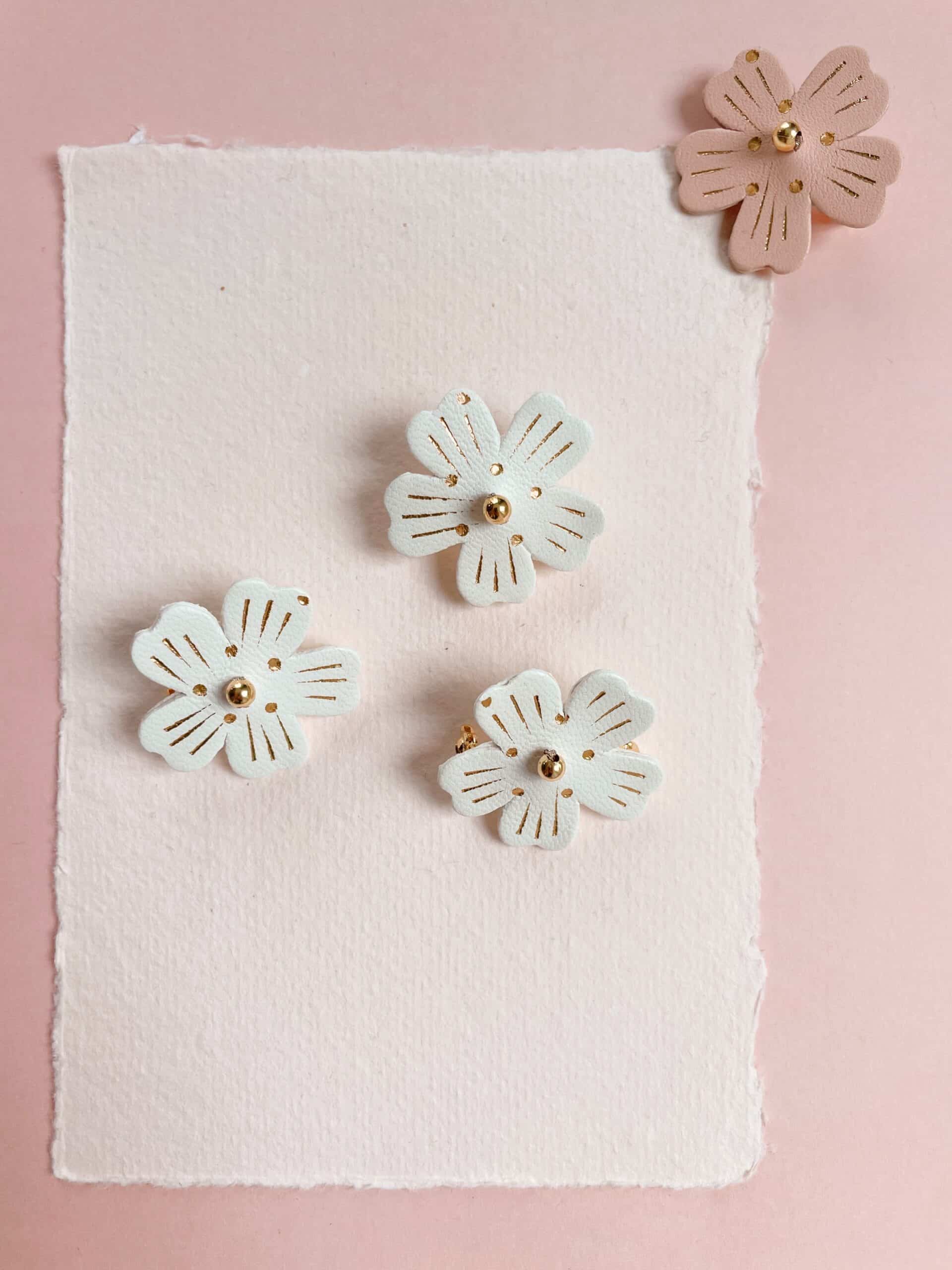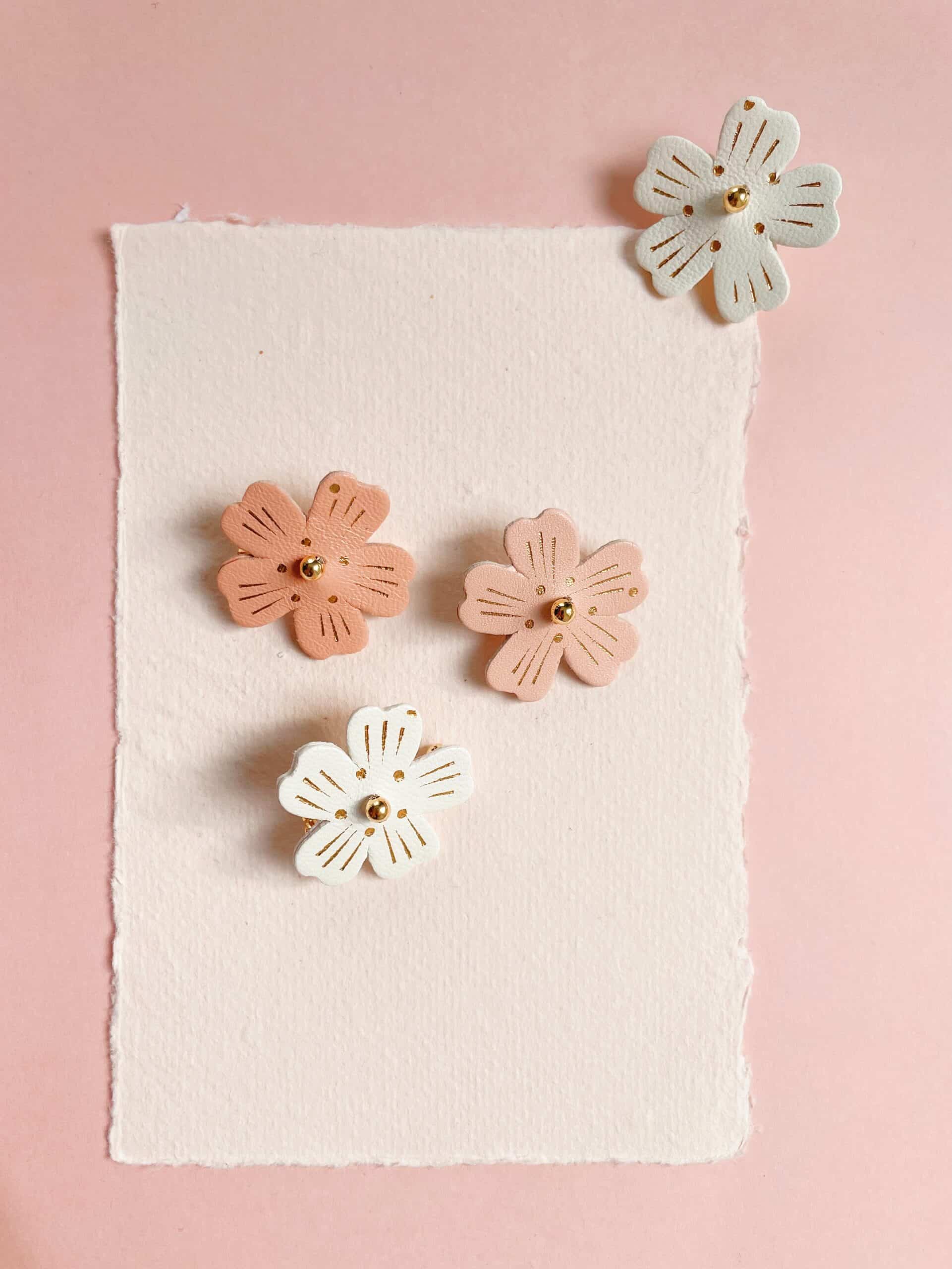 Un bijou floral aux lignes douces pour garder l’esprit du printemps toute l’année. Chaque fleur de cerisier est un spécimen unique, façonnée à la main dans des tons intemporels de blanc, rose poudré ou rose thé ( plus soutenu presque saumoné). Cuir surcyclé, touche de dorure à chaud, perle et support en laiton doré or fin. Dimensions : environ 3,5 cm. Chaque broche est unique.