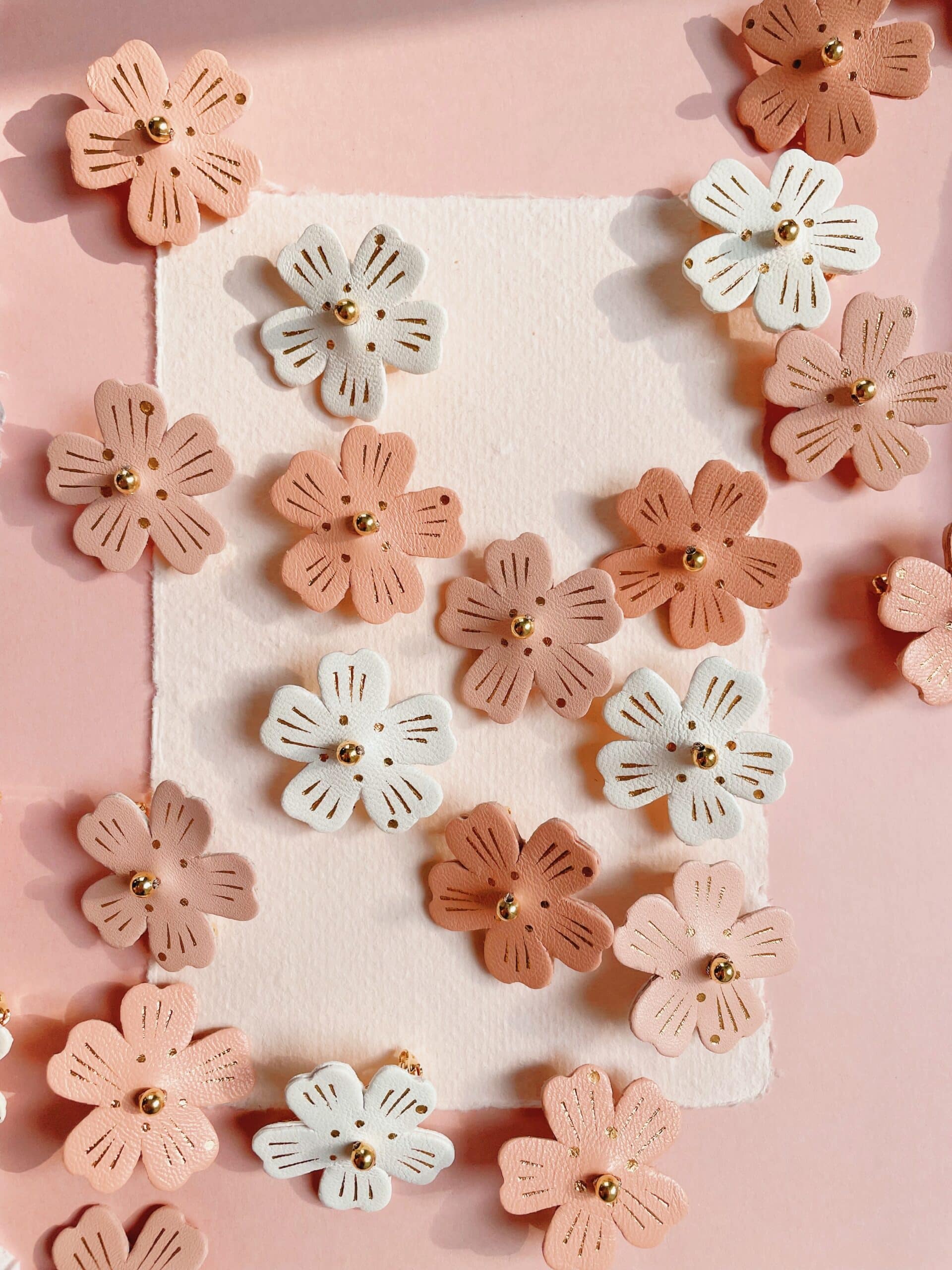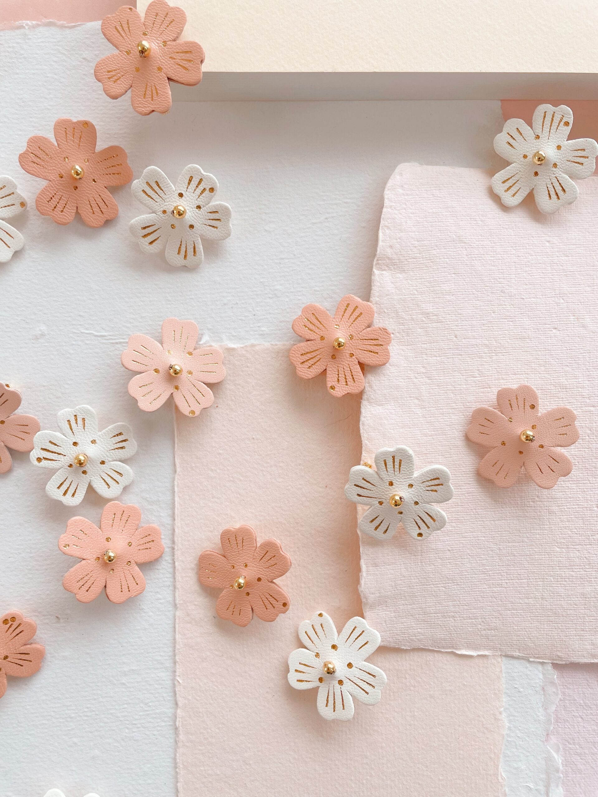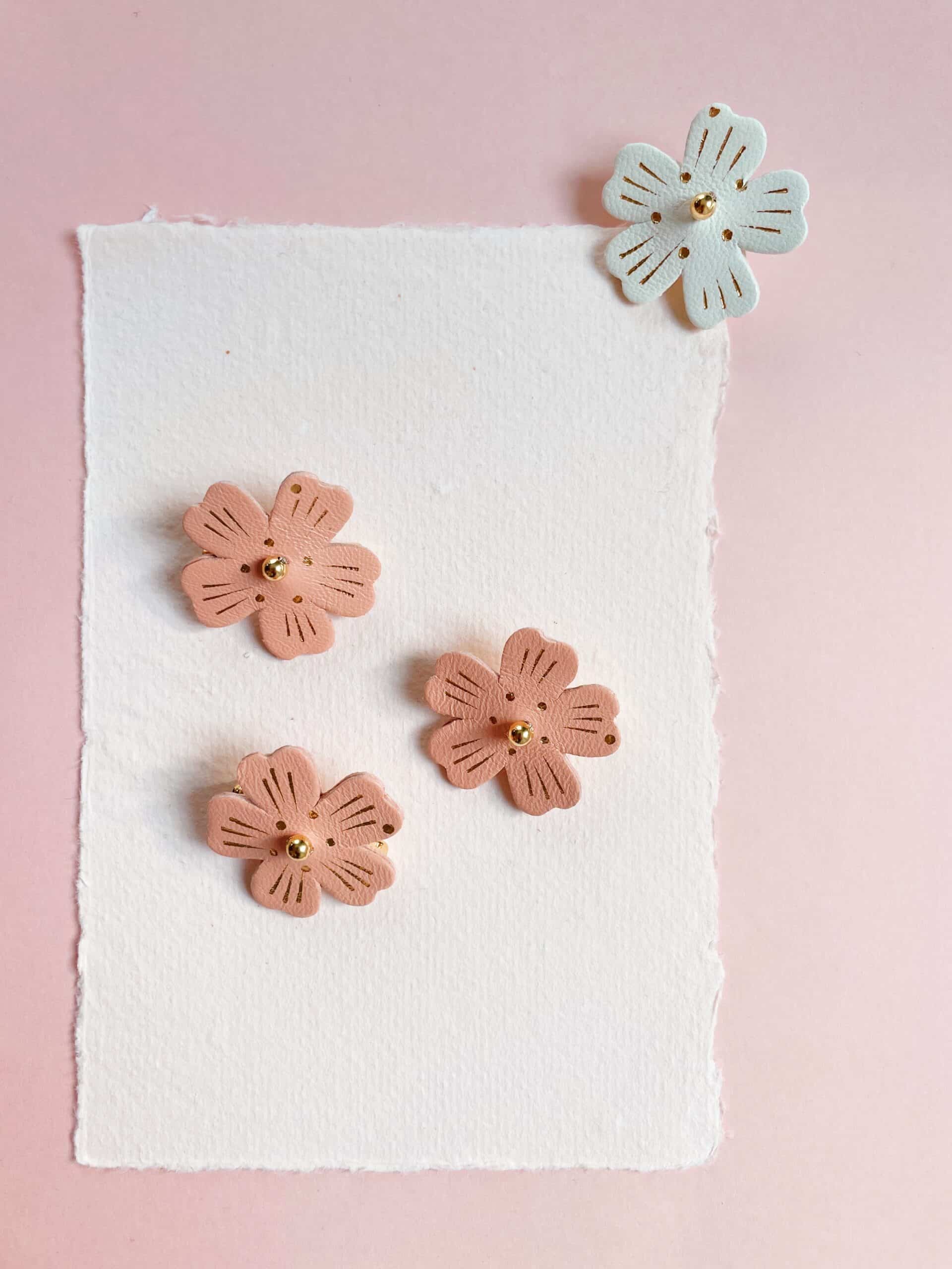Un bijou floral aux lignes douces pour garder l’esprit du printemps toute l’année. Chaque fleur de cerisier est un spécimen unique, façonnée à la main dans des tons intemporels de blanc, rose poudré ou rose thé ( plus soutenu presque saumoné). Cuir surcyclé, touche de dorure à chaud, perle et support en laiton doré or fin. Dimensions : environ 3,5 cm. Chaque broche est unique.