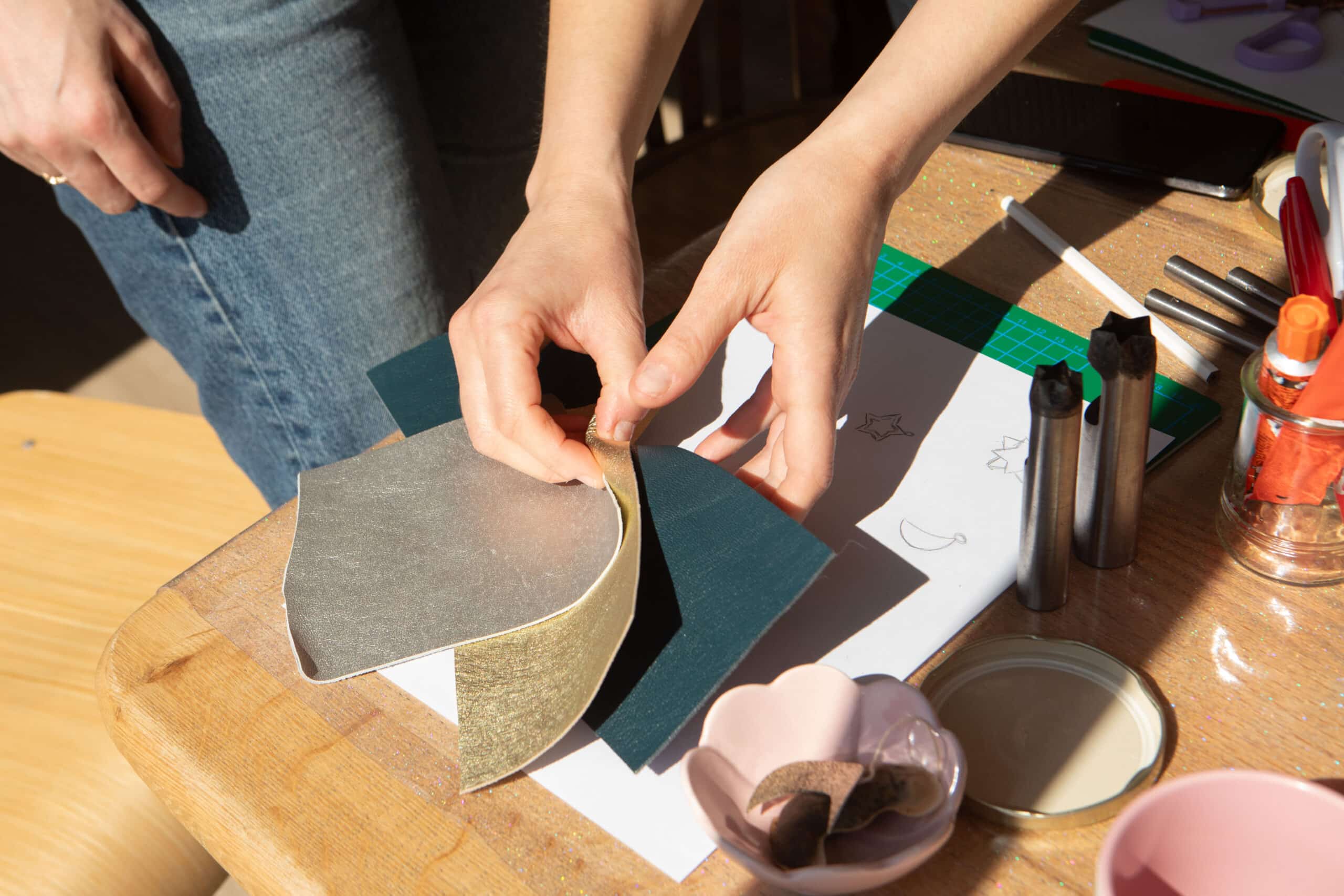 Les ateliers d’initiation au travail du cuir surcyclé conviennent aux débutants.